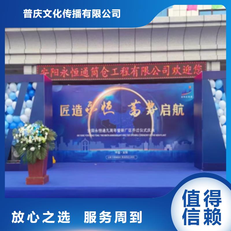 普庆文化传播(亳州市分公司)是一家集 开业庆典策划研发、生产、销售、售后于一体的综合性企业。公司全体成员严格奉行“系统管理,质量保障,交货快捷,客户满意”的宗旨, 竭诚为广大新老客户服务,邀您共创辉煌!